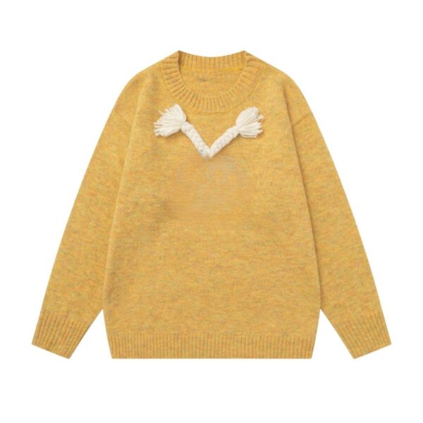This sweater fuses vintage knit textures with contemporary streetwear aesthetics, creating a bold and fashion-forward look. The relaxed silhouette and eye-catching details—whether through contrast patterns or unique textures—add depth and character to any outfit. Pair it with denim or wide-leg trousers to effortlessly channel a laid-back yet confident style that’s equal parts trend and individuality.