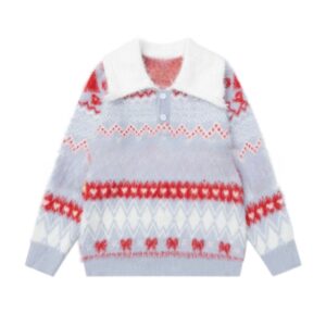 This sweater fuses vintage knit textures with contemporary streetwear aesthetics, creating a bold and fashion-forward look. The relaxed silhouette and eye-catching details—whether through contrast patterns or unique textures—add depth and character to any outfit. Pair it with denim or wide-leg trousers to effortlessly channel a laid-back yet confident style that’s equal parts trend and individuality.